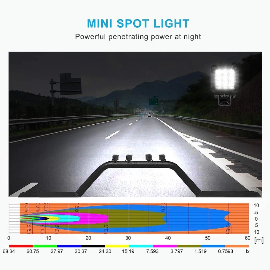 【Light and small size】2 inch car work light, wider range of application, you can install in small car, off-road vehicles, motorcycle, wrangler, truck, tractor, SUV, UTV, ATV and boat, etc.